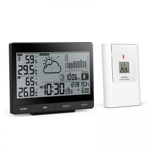 - In/ outdoor temperature (°C/°F) & humidity readings with trend
